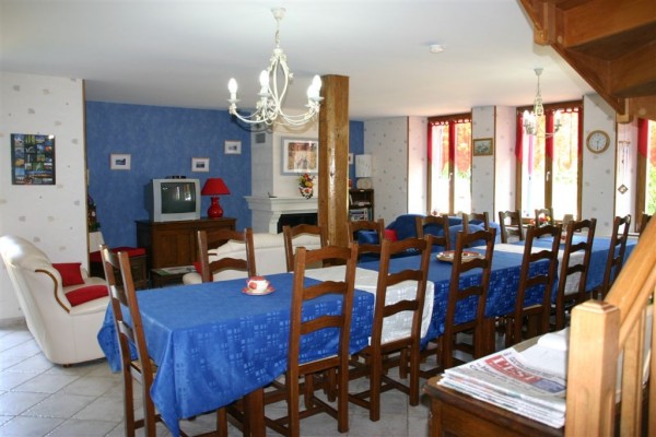 2 pièces réservées aux hôtes : salon, TV, cheminée, livres, pc ADSL, wifi, infos touristiques, et salle à manger.