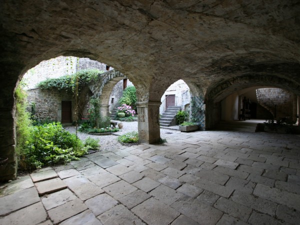 Authentique bastide cévenole, toute de pierres et bois, organisée autour d'une cour intérieure que rafraîchit une fontaine.
